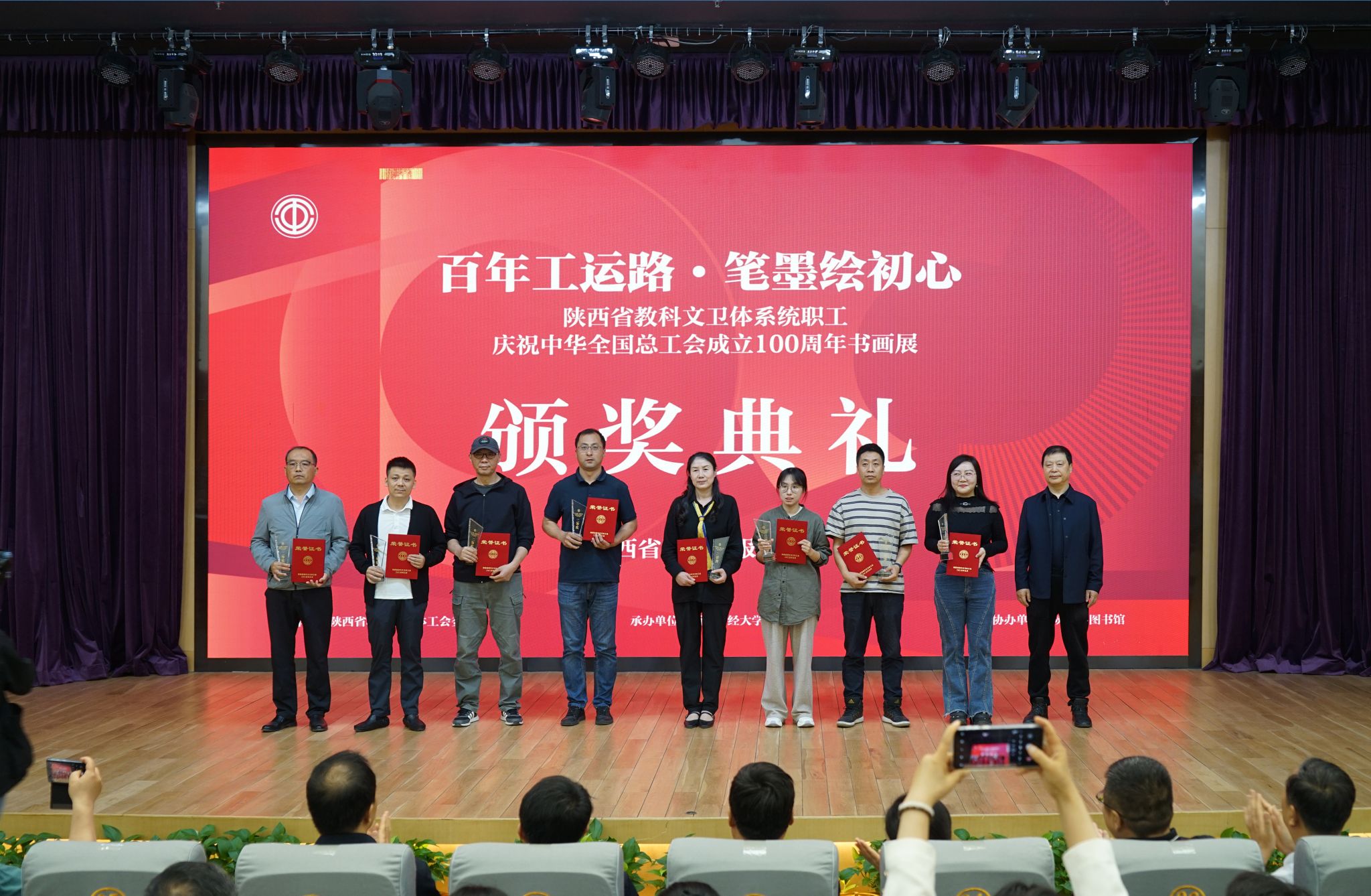 5月9日上午,由陕西省教科文卫体工会主办、西安财经大学承办、陕西省图书馆协办的“百年工运路·笔墨绘初心”陕西省教科文卫体系统职工书画展开幕式活动在陕西省图书馆二楼报告厅隆重举行。本次书画展共收到陕西各地市数百家单位作品1000余幅,在最终评选出的162件获奖作品中,我校5位教职工书画作品表现优异、喜获佳绩,学校荣获“优秀组织奖”。