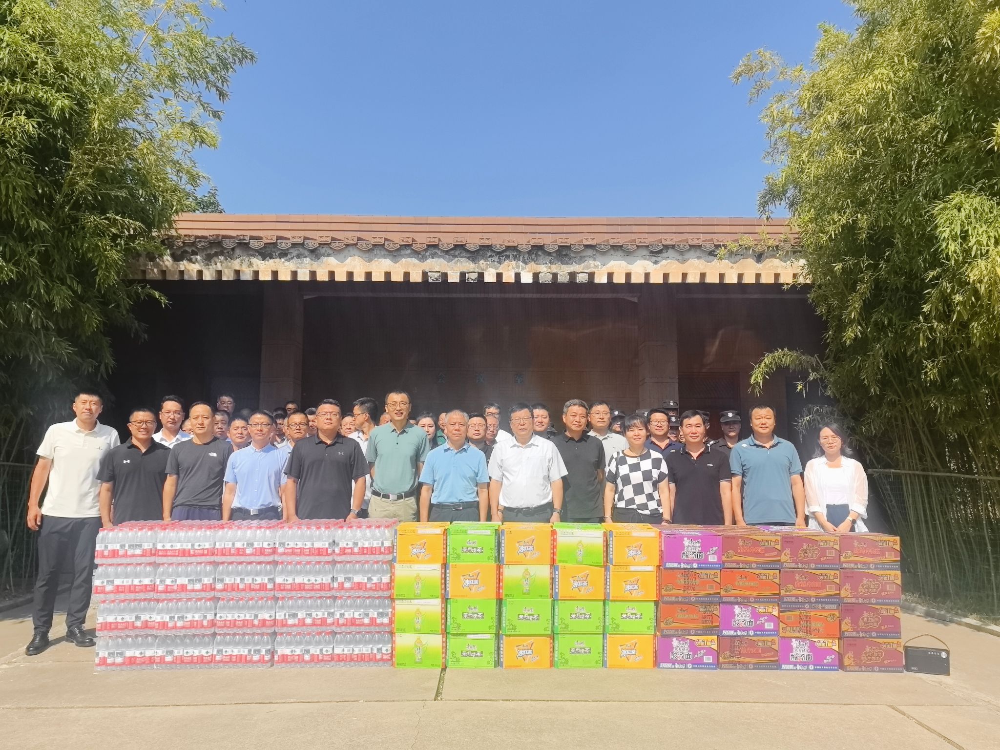 在草堂校区管委会门前,梅争利、刘晓武集中看望并慰问了工程建设指挥部、总务处、后勤服务中心、保卫处等部门的值班人员。为他们送上防暑降温慰问品,并代表学校向奋战在高温一线的职工致以崇高敬意和诚挚感谢。