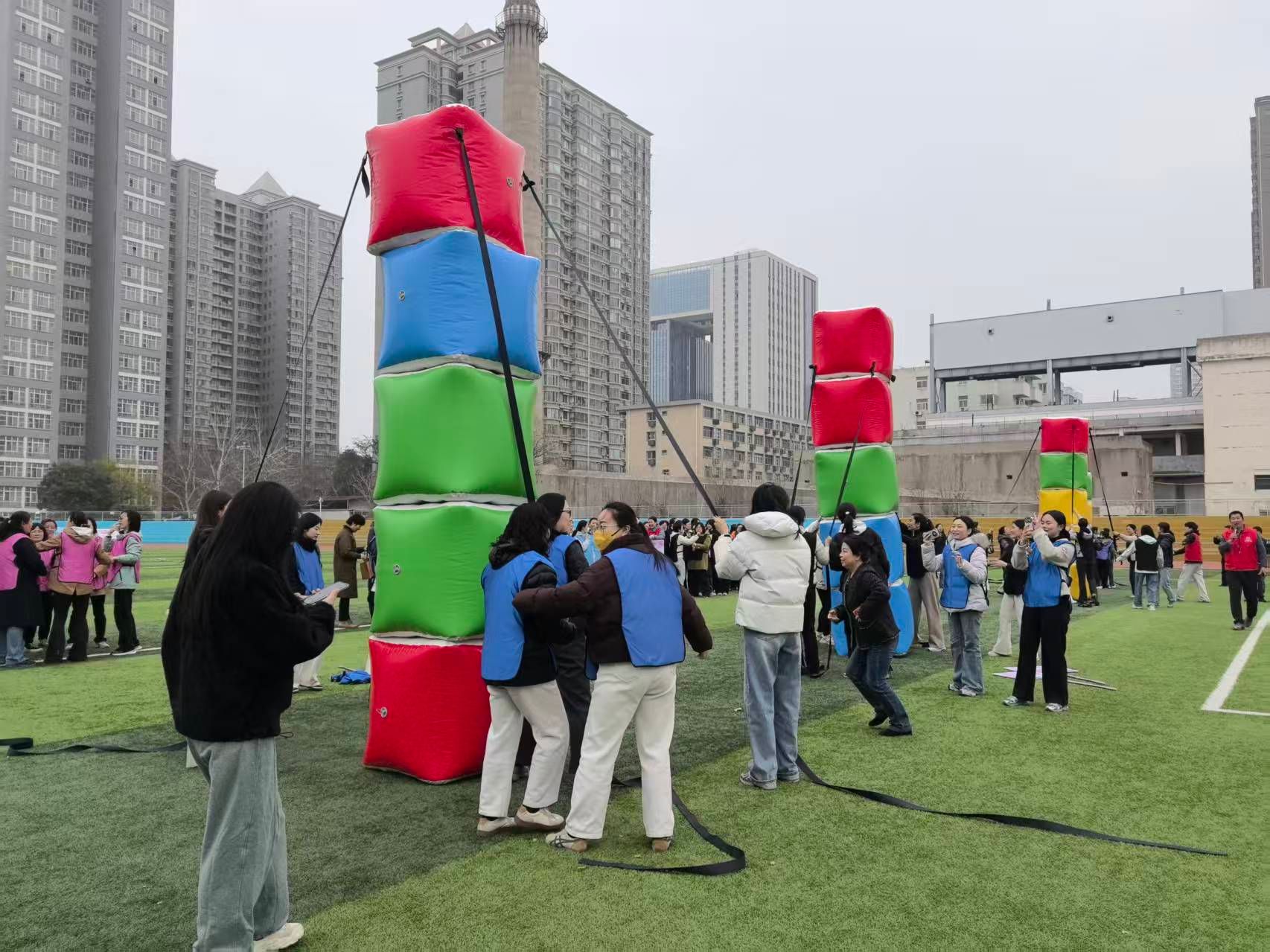 本次趣味运动会以我校办学130周年并校70周年华诞为契机,设置了“快乐拼图”“合力致胜”“疯狂动物城”“俄罗斯方块”四个兼具趣味性与协作性的比赛项目。赛场上,女教职工们暂时放下繁忙的工作,换上轻便的运动装,化身活力四射的运动员,在欢声笑语中团结协作、默契配合,展现出新时代女性的风采与力量。