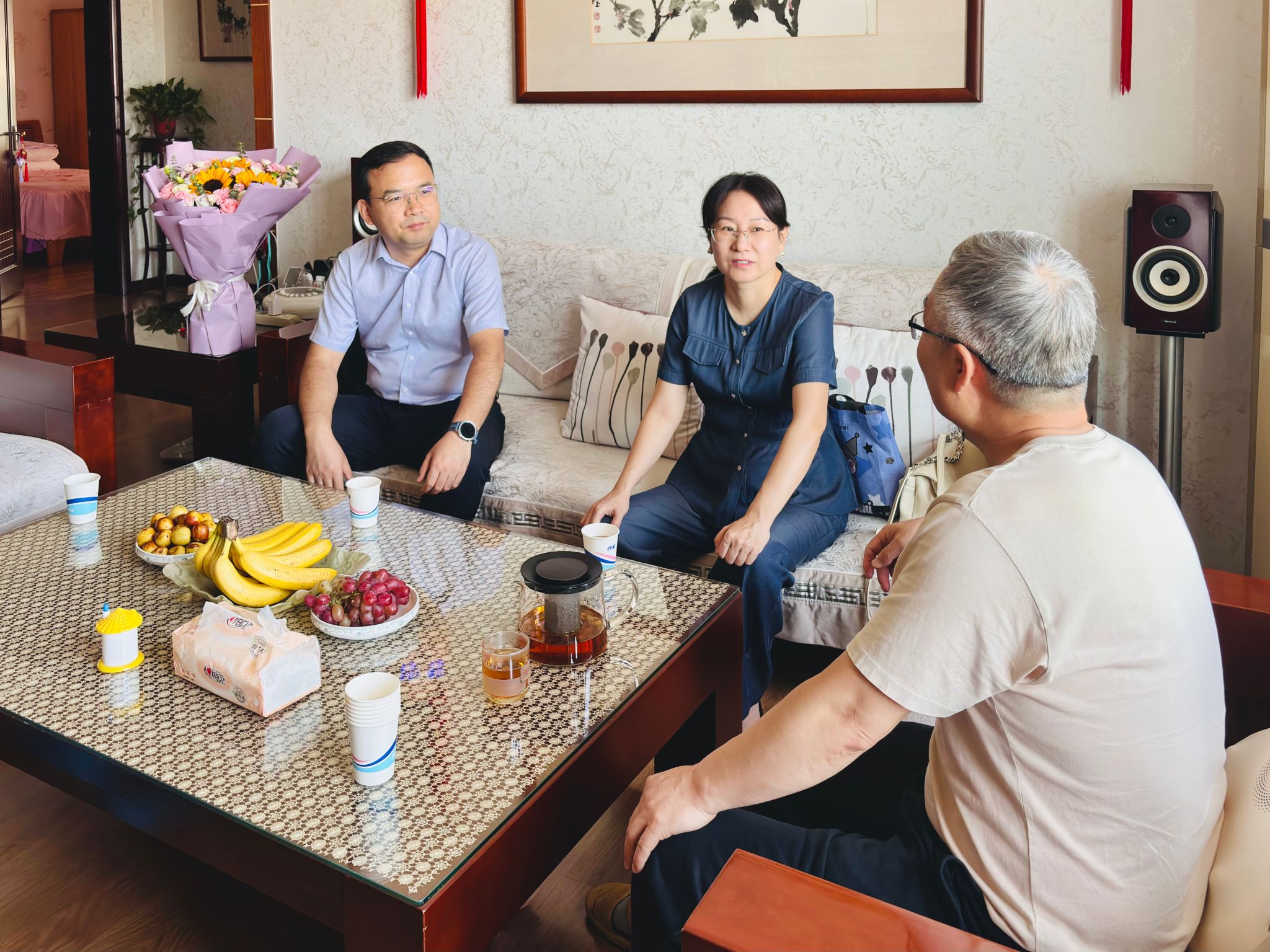 9月9日上午,学院党委书记张卫华、副书记黄河代表学院登门看望了在家的退休教师并送上节日祝福。每到一户,学院领导都与退休教师们亲切交谈,详细询问他们的身体状况、生活起居及家庭情况,认真倾听老教师们回忆在学院任教时的奋斗历程,感谢他们为学院学科建设、人才培养奠定的坚实基础,并向他们介绍了学院近年来在教学改革、科学研究、学生发展等方面取得的最新成果。老教师们对学院的牵挂与慰问表示衷心感谢,表示将继续关注学院发展,为学院建设建言献策。与此同时,学院为全体在职教师精心准备了节日慰问品,并送上节日祝福。