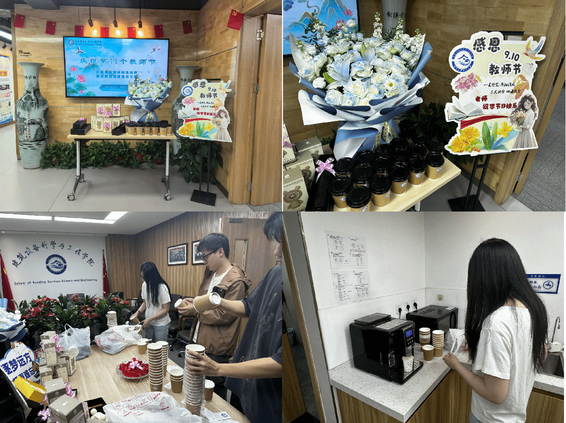 为弘扬尊师重教的优良传统,进一步提升教职工的归属感与幸福感,建筑设备科学与工程学院精心组织了“幸运抽奖送惊喜”“暖心咖啡赠恩师”“教师荣休座谈会”“走访慰问教师代表”等系列主题活动,热烈庆祝第41个教师节,向全体教师致以节日的祝福和崇高的敬意。