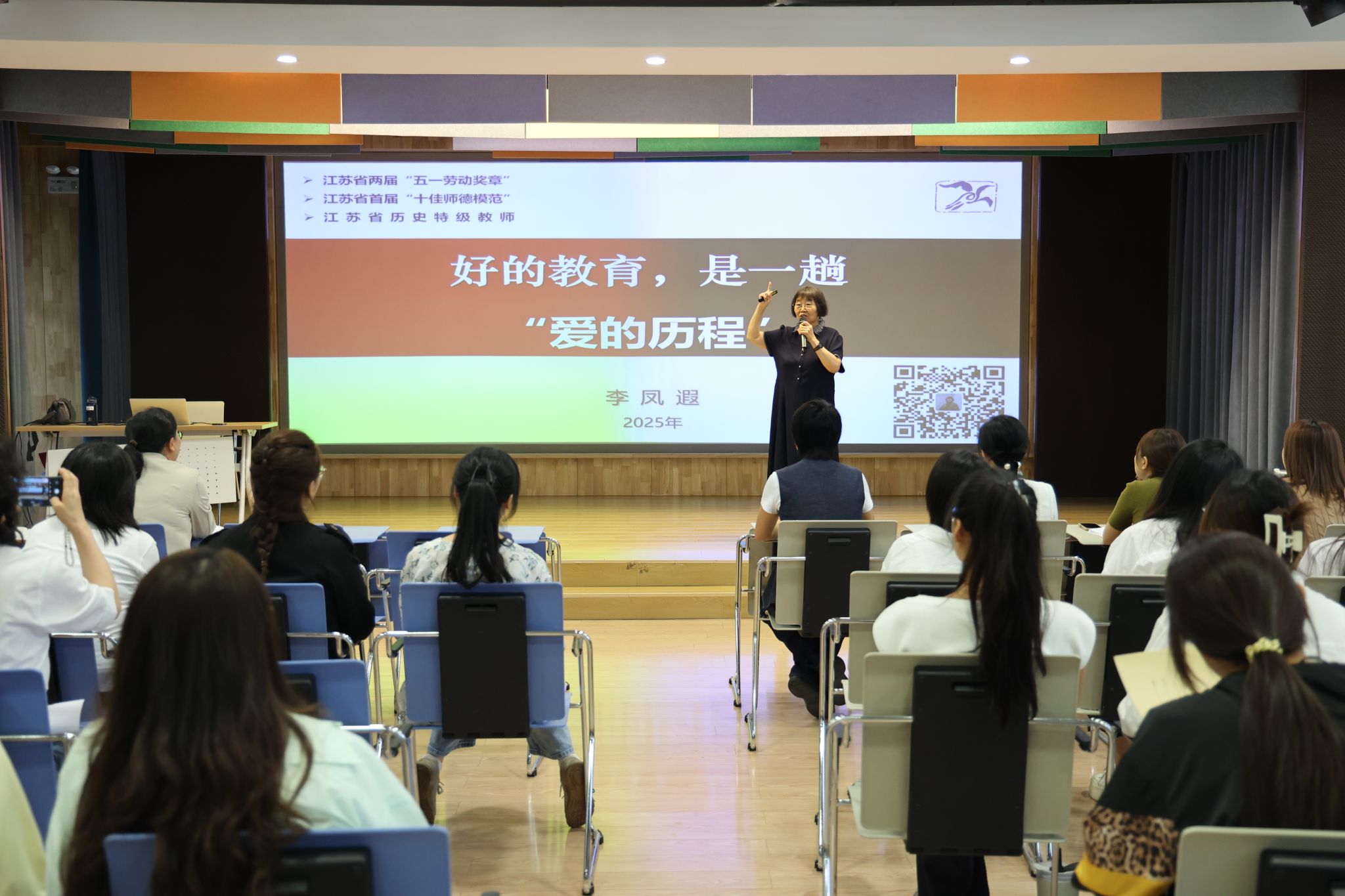 教师节前夕,附属学校特邀江苏省特级教师李凤遐为附小全体教师做了题为“好的教育,是一趟爱的历程”的专题讲座。李老师结合30余年从教经验,打破传统讲座模式,融入现场互动与表演环节,会场内歌声此起彼伏,掌声、欢笑声各达20余次,氛围热烈,与会教师表示深受激励,对教育和教师的身份有了更深刻的理解和认识。