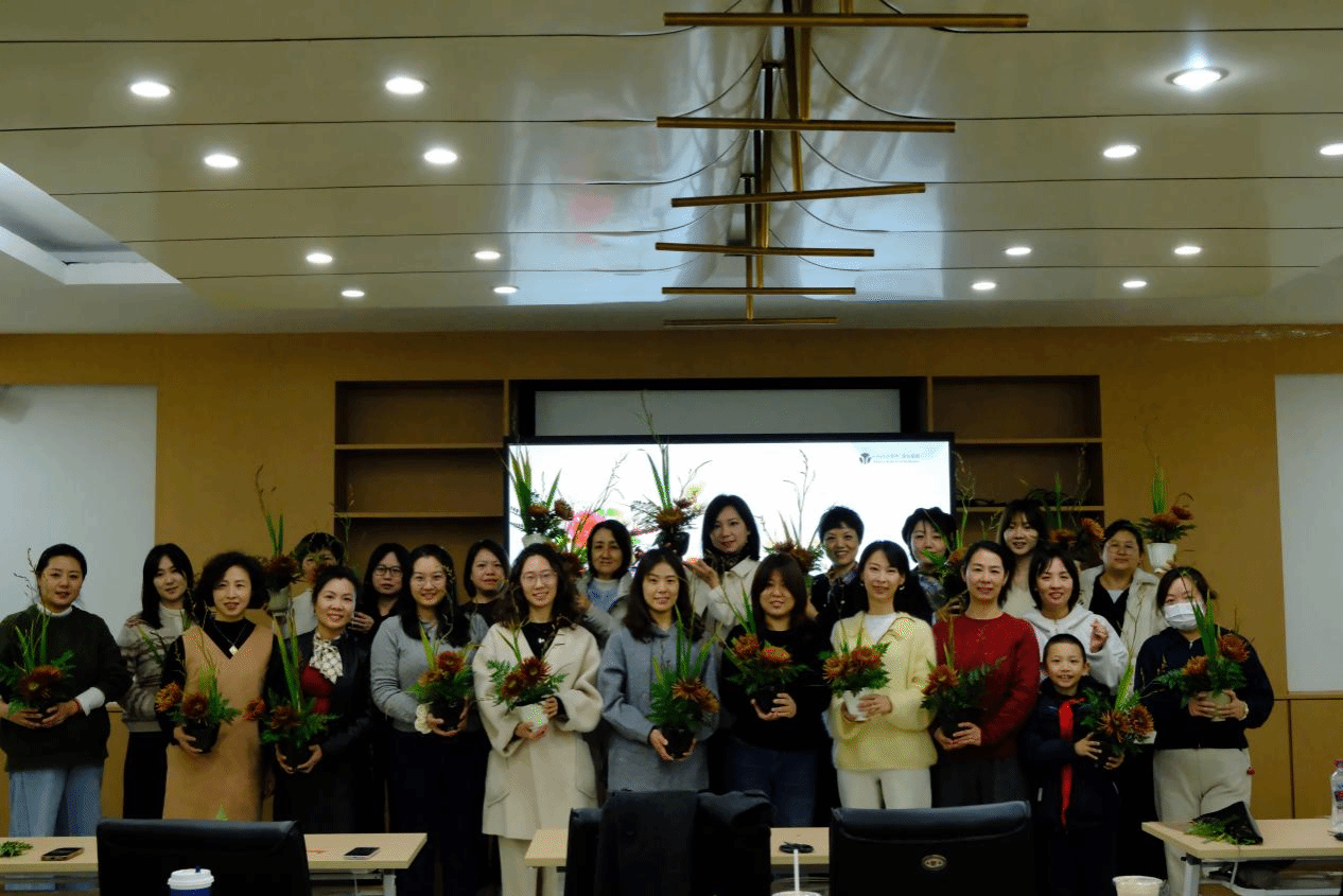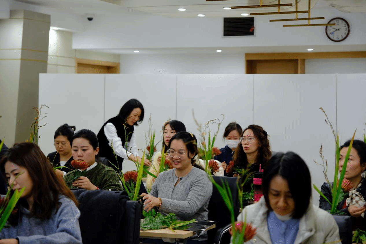 协会何会长表示,此次突破以往西式花艺模式,正是因为中式花道与教师群体需求高度契合:“教师们日常忙碌于教学科研,需要一种能沉淀心灵的艺术形式。中式花道强调的秩序感、留白美学,能帮助大家在创作中梳理思绪。”现场提供的陶制花器可重复使用,也体现了中式美学“惜物”的可持续理念。