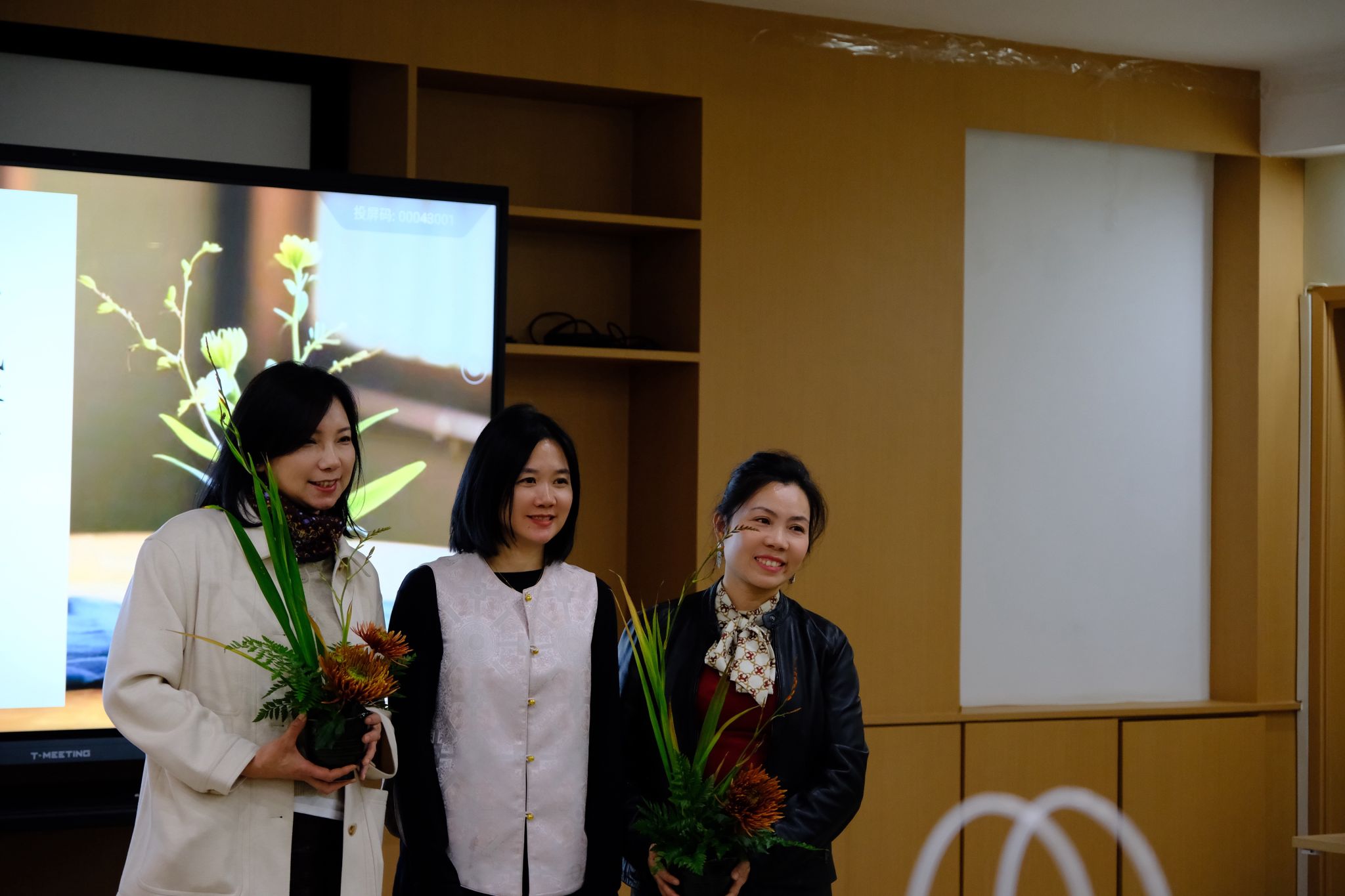 活动尾声,会员们手捧作品合影,插花作品与笑脸相映成趣。