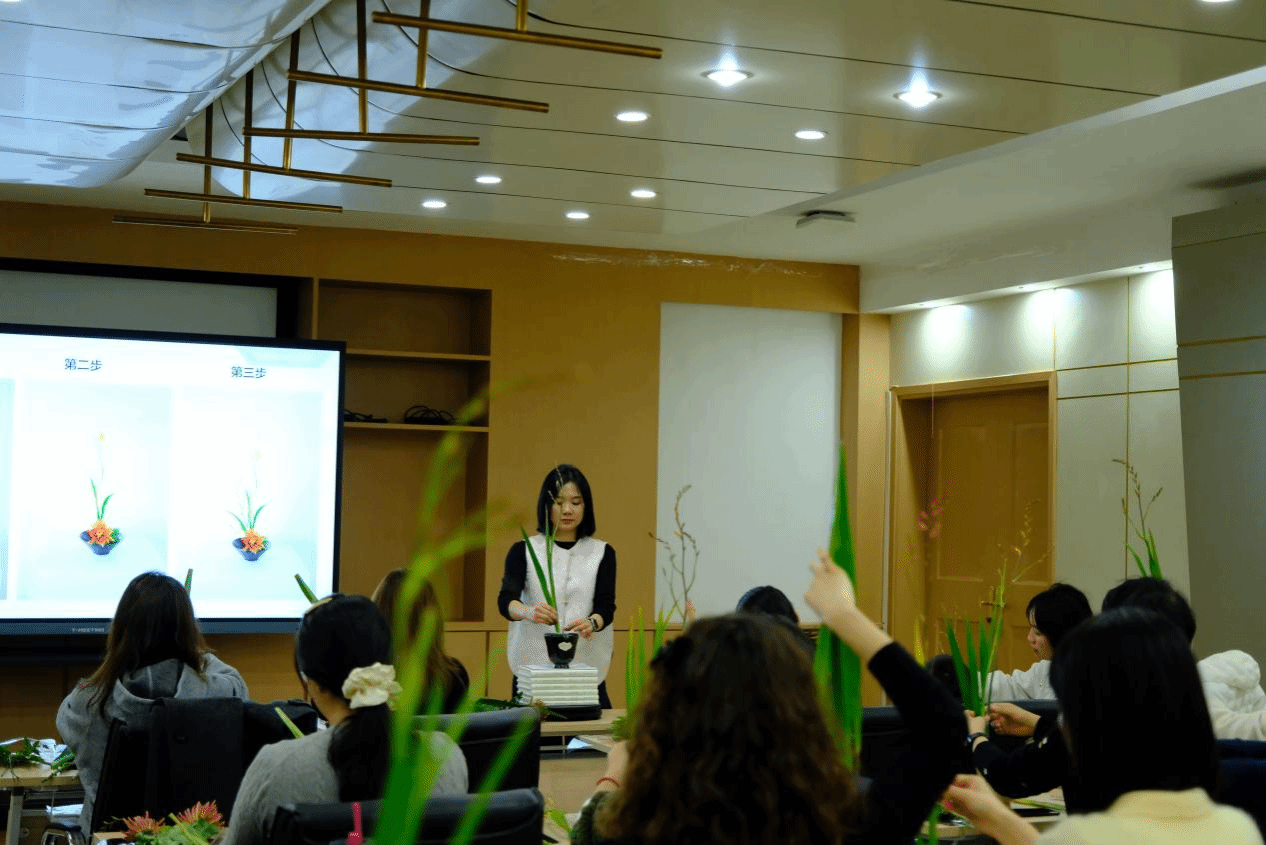 12月10日中午,西安建筑科技大学雁塔校区图书馆一楼会议室内,一场别开生面的中式禅意插花体验活动正在静谧展开。与往常西式花艺课为主的活泼氛围不同,现场弥漫着一种宁静专注的气息——这是插花协会会员们首次接触花道课程,在火焰兰与南天竹的线条之间,开启了一场“认识自然、表现自然”的禅意之旅。
